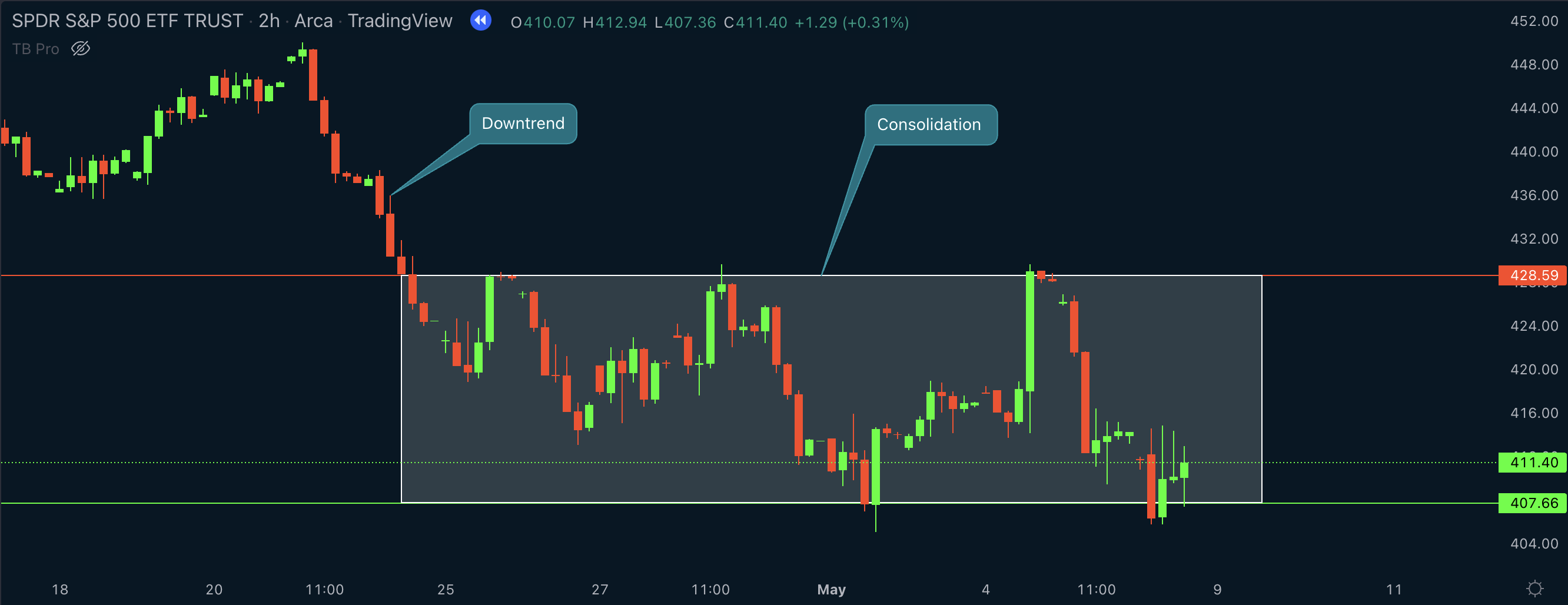 * This results in a period of **consolidation**, where price moves within a range.